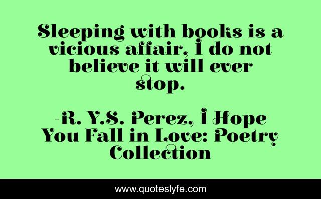 "R. Y.S. Perez, I Hope You Fall in Love: Poetry Collection Quotes." Quoteslyfe.com, 2025. Sat. 06 Dec. 2025. <https://www.quoteslyfe.com/quote/Sleeping-with-books-is-a-vicious-affair-43812>.