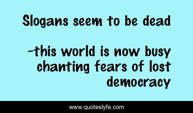 This page presents the quote "Slogans seem to be dead". Author of this quote is this world is now busy chanting fears of lost democracy. .
