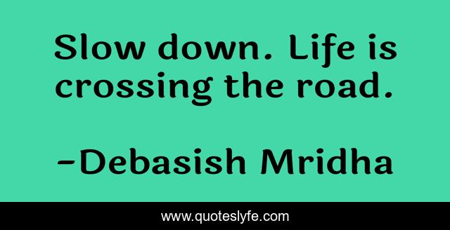 This page presents the quote "Slow down. Life is crossing the road.". Author of this quote is Debasish Mridha. This quote is about slow-down, life-is-crossing-the-road, philosophy, debasish-mridha, quotes, appreciate-today, inspirational, enthusiasm, debasish-mridha-m-d,.