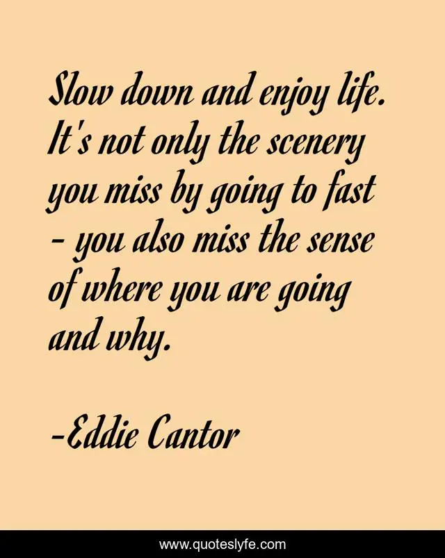 "Eddie Cantor Quotes." Quoteslyfe.com, 2025. Tue. 30 Dec. 2025. <https://www.quoteslyfe.com/quote/Slow-down-and-enjoy-life-It-s-323764>.