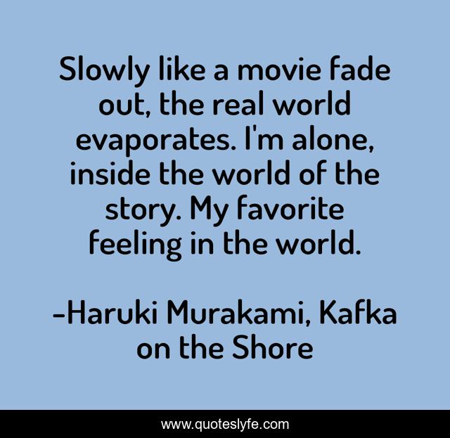 This page presents the quote "Slowly like a movie fade out, the real world evaporates. I'm alone, inside the world of the story. My favorite feeling in the world.". Author of this quote is Haruki Murakami, Kafka on the Shore. This quote is about feeling, connected, reading,.