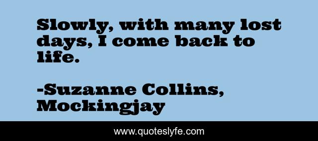 "Suzanne Collins, Mockingjay Quotes." Quoteslyfe.com, 2025. Mon. 15 Dec. 2025. <https://www.quoteslyfe.com/quote/Slowly-with-many-lost-days-I-come-3126>.