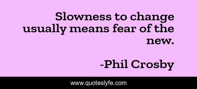 This page presents the quote "Slowness to change usually means fear of the new.". Author of this quote is Phil Crosby. This quote is about new, fear, means,.