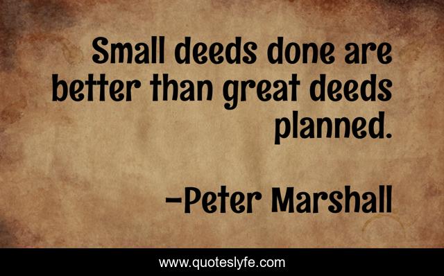 "Peter Marshall Quotes." Quoteslyfe.com, 2025. Fri. 05 Dec. 2025. <https://www.quoteslyfe.com/quote/Small-deeds-done-are-better-than-great-311013>.