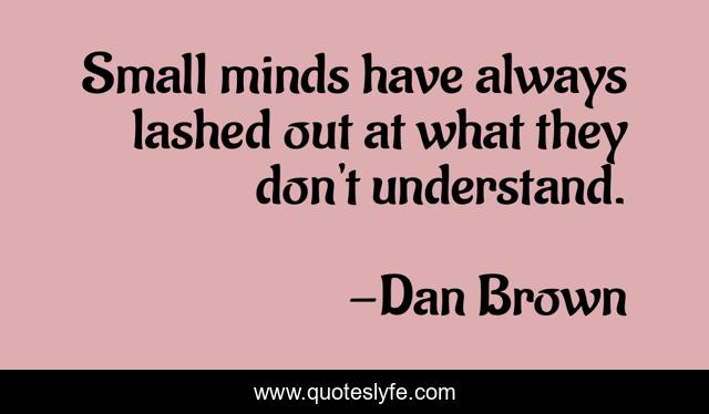 This page presents the quote "Small minds have always lashed out at what they don't understand.". Author of this quote is Dan Brown. This quote is about knowledge, learning,.