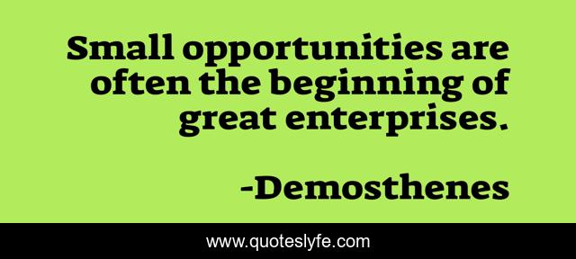 This page presents the quote "Small opportunities are often the beginning of great enterprises.". Author of this quote is Demosthenes. .