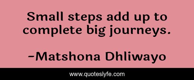 "Matshona Dhliwayo Quotes." Quoteslyfe.com, 2025. Sun. 14 Dec. 2025. <https://www.quoteslyfe.com/quote/Small-steps-add-up-to-complete-big-109055>.