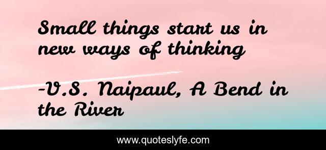 "V.S. Naipaul, A Bend in the River Quotes." Quoteslyfe.com, 2025. Fri. 05 Dec. 2025. <https://www.quoteslyfe.com/quote/Small-things-start-us-in-new-ways-59600>.