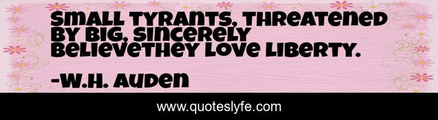 This page presents the quote "Small tyrants, threatened by big, sincerely believethey love liberty.". Author of this quote is W.H. Auden. This quote is about freedom, liberty,.