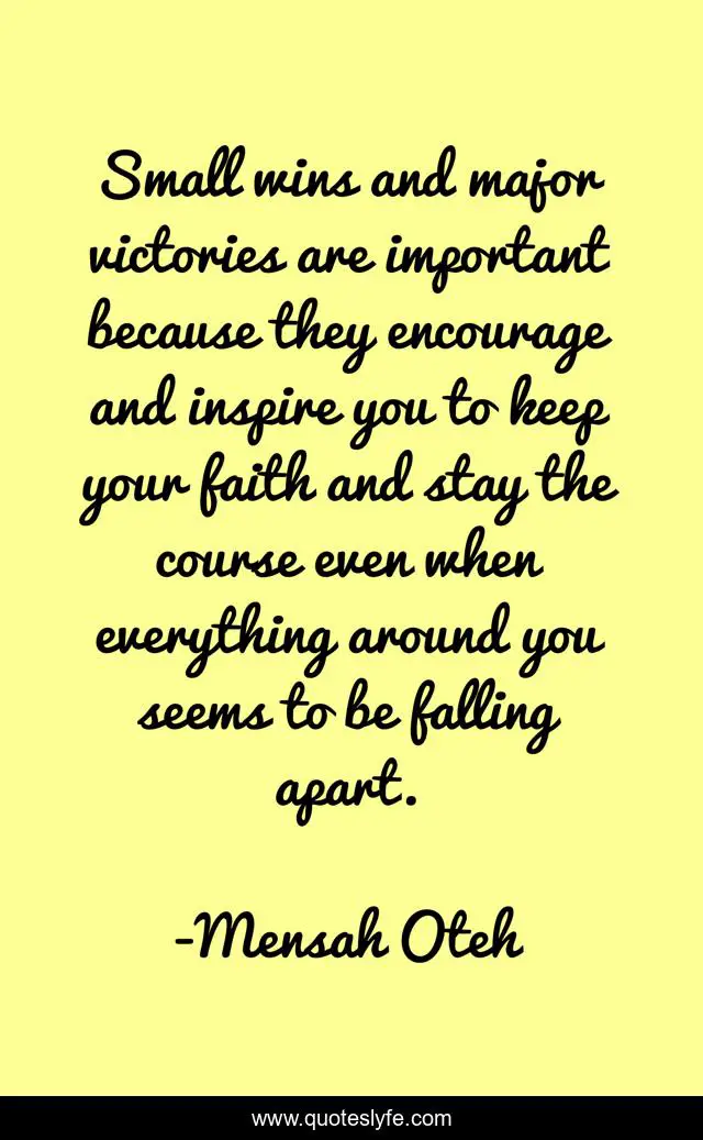 "Mensah Oteh Quotes." Quoteslyfe.com, 2025. Sat. 06 Dec. 2025. <https://www.quoteslyfe.com/quote/Small-wins-and-major-victories-are-important-49192>.