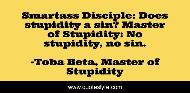 This page presents the quote "Smartass Disciple: Does stupidity a sin? Master of Stupidity: No stupidity, no sin.". Author of this quote is Toba Beta, Master of Stupidity. This quote is about state-of-mind, stupidity, transgression, sin,.
