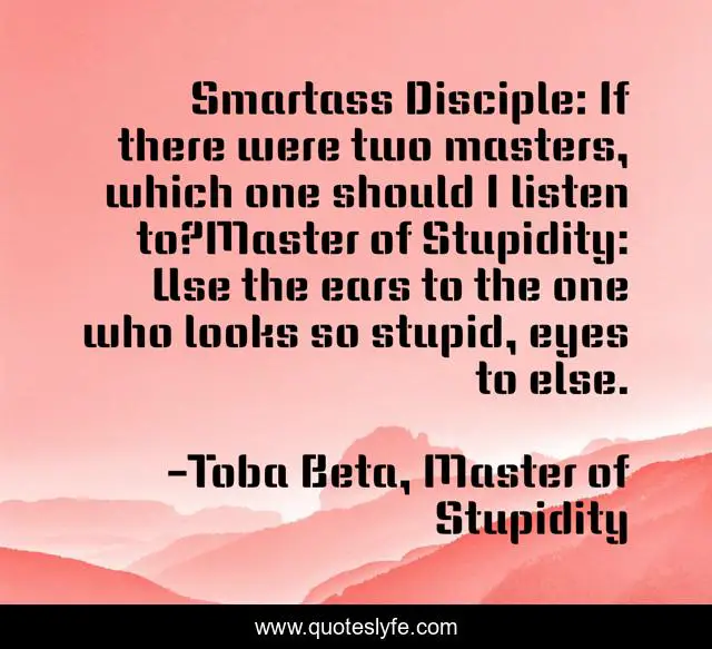 "Toba Beta, Master of Stupidity Quotes." Quoteslyfe.com, 2025. Sun. 07 Dec. 2025. <https://www.quoteslyfe.com/quote/Smartass-Disciple-If-there-were-two-masters-9814>.