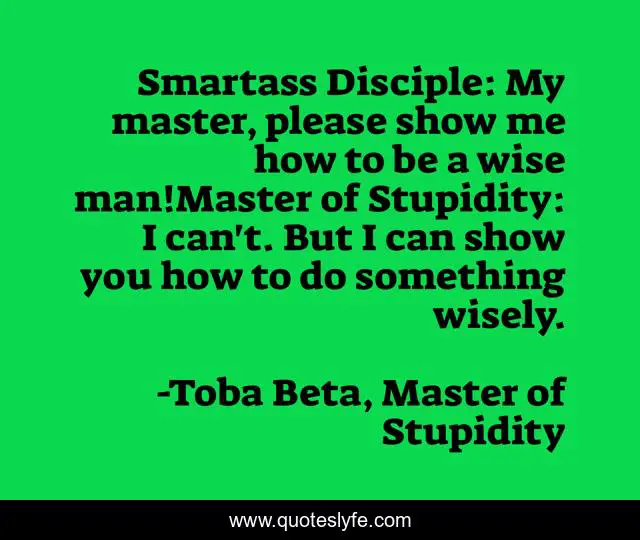 "Toba Beta, Master of Stupidity Quotes." Quoteslyfe.com, 2025. Mon. 08 Dec. 2025. <https://www.quoteslyfe.com/quote/Smartass-Disciple-My-master-please-show-me-222239>.