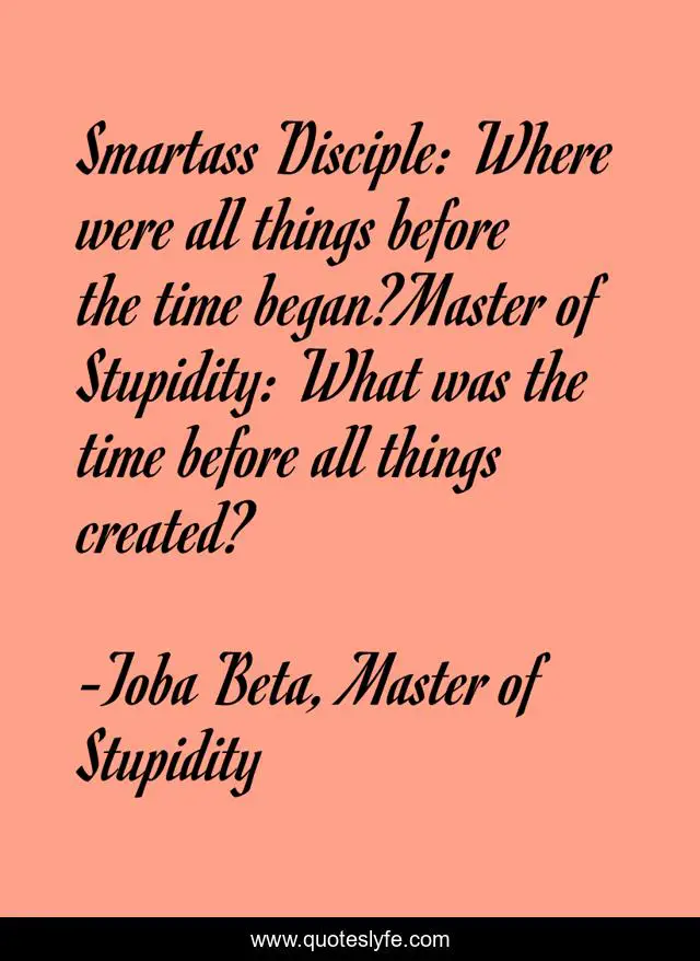 "Toba Beta, Master of Stupidity Quotes." Quoteslyfe.com, 2025. Fri. 05 Dec. 2025. <https://www.quoteslyfe.com/quote/Smartass-Disciple-Where-were-all-things-before-38755>.