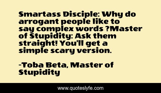 "Toba Beta, Master of Stupidity Quotes." Quoteslyfe.com, 2025. Fri. 05 Dec. 2025. <https://www.quoteslyfe.com/quote/Smartass-Disciple-Why-do-arrogant-people-like-9627>.