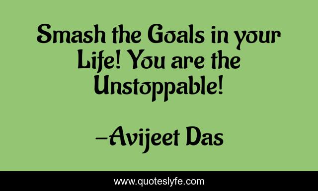 This page presents the quote "Smash the Goals in your Life! You are the Unstoppable!". Author of this quote is Avijeet Das. This quote is about life, life-lessons, goals-in-life, positive, motivational, unstoppable-positive-force, life-and-sayings, unstoppable, unstoppable-dreams,.