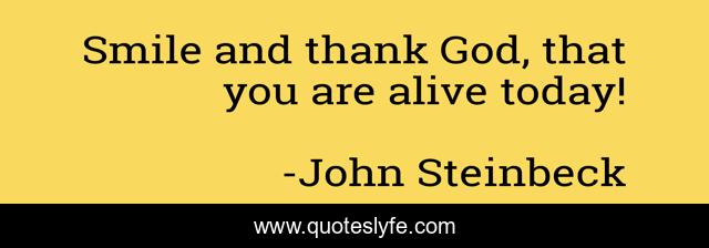 This page presents the quote "Smile and thank God, that you are alive today!". Author of this quote is John Steinbeck. This quote is about life, god, alive, today, smile, happiness,.