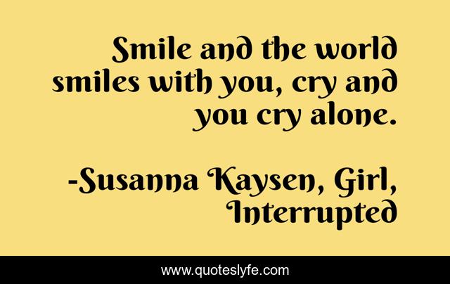 This page presents the quote "Smile and the world smiles with you, cry and you cry alone.". Author of this quote is Susanna Kaysen, Girl, Interrupted. .