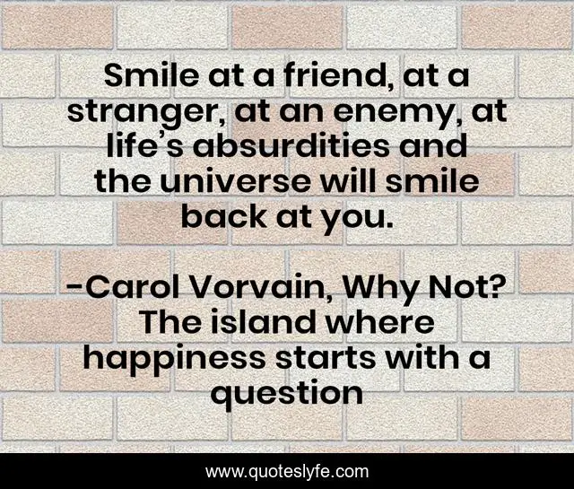 "Carol Vorvain, Why Not? The island where happiness starts with a question Quotes." Quoteslyfe.com, 2025. Sat. 06 Dec. 2025. <https://www.quoteslyfe.com/quote/Smile-at-a-friend-at-a-stranger-194823>.