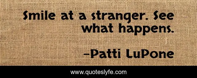 This page presents the quote "Smile at a stranger. See what happens.". Author of this quote is Patti LuPone. This quote is about happens, see, stranger,.