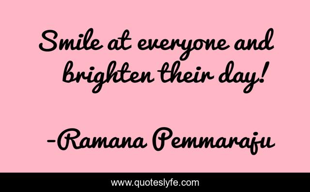 "Ramana Pemmaraju Quotes." Quoteslyfe.com, 2025. Mon. 08 Dec. 2025. <https://www.quoteslyfe.com/quote/Smile-at-everyone-and-brighten-their-day-194893>.