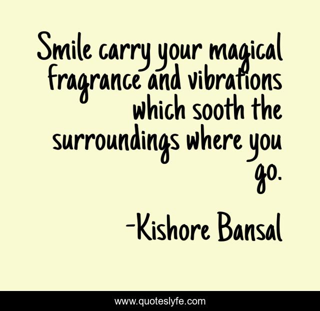 "Kishore Bansal Quotes." Quoteslyfe.com, 2025. Tue. 09 Dec. 2025. <https://www.quoteslyfe.com/quote/Smile-carry-your-magical-fragrance-and-vibrations-194921>.