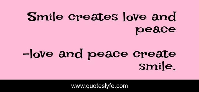"love and peace create smile. Quotes." Quoteslyfe.com, 2025. Sun. 07 Dec. 2025. <https://www.quoteslyfe.com/quote/Smile-creates-love-and-peace-195005>.
