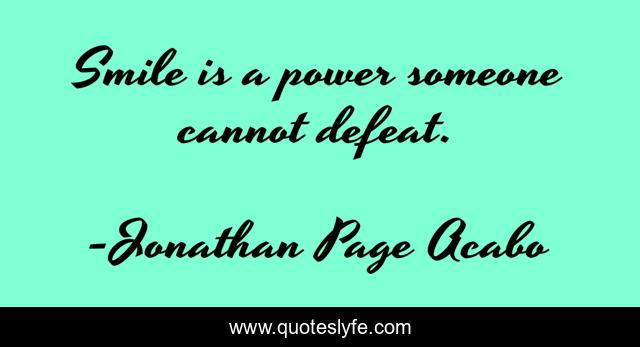 "Jonathan Page Acabo Quotes." Quoteslyfe.com, 2025. Sat. 06 Dec. 2025. <https://www.quoteslyfe.com/quote/Smile-is-a-power-someone-cannot-defeat-23120>.