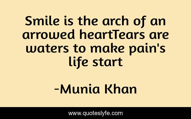 This page presents the quote "Smile is the arch of an arrowed heartTears are waters to make pain's life start". Author of this quote is Munia Khan. This quote is about heartache, heart, life, love, arch, make, start, tears, archer,.