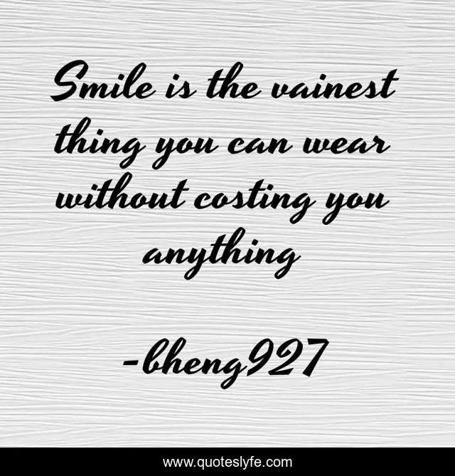 This page presents the quote "Smile is the vainest thing you can wear without costing you anything". Author of this quote is bheng927. This quote is about smile, happiness, vanity,.