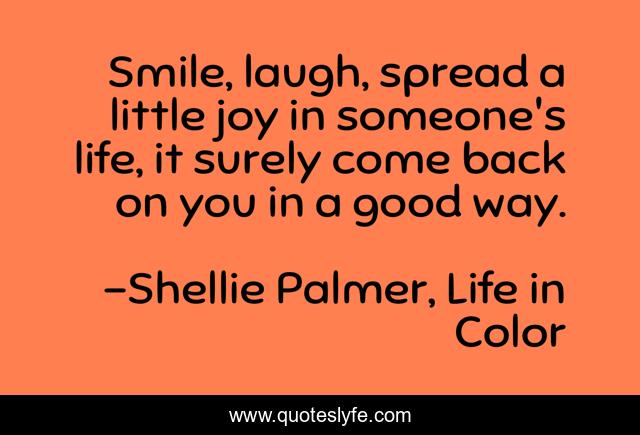 "Shellie Palmer, Life in Color Quotes." Quoteslyfe.com, 2025. Sat. 06 Dec. 2025. <https://www.quoteslyfe.com/quote/Smile-laugh-spread-a-little-joy-in-130669>.