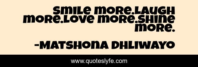 "Matshona Dhliwayo Quotes." Quoteslyfe.com, 2025. Tue. 09 Dec. 2025. <https://www.quoteslyfe.com/quote/Smile-more-Laugh-more-Love-more-Shine-227259>.