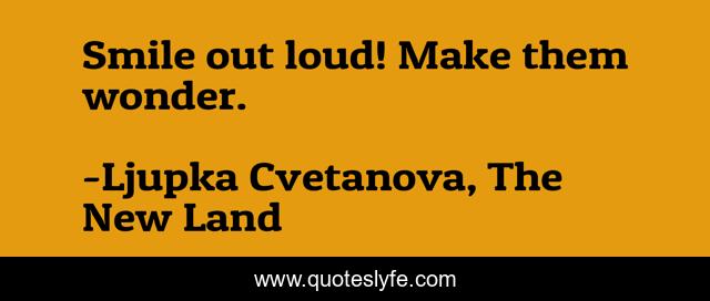 "Ljupka Cvetanova, The New Land Quotes." Quoteslyfe.com, 2025. Sun. 07 Dec. 2025. <https://www.quoteslyfe.com/quote/Smile-out-loud-Make-them-wonder-183166>.