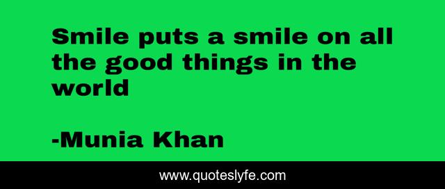 This page presents the quote "Smile puts a smile on all the good things in the world". Author of this quote is Munia Khan. This quote is about smiles, good, things, world, put, smile, happiness, happy,.