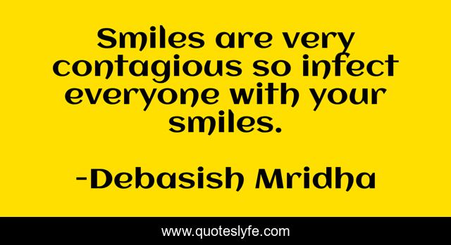 This page presents the quote "Smiles are very contagious so infect everyone with your smiles.". Author of this quote is Debasish Mridha. This quote is about life, love, knowledge, inspirational, intelligence, philosophy, wisdom, quotes, affection,.