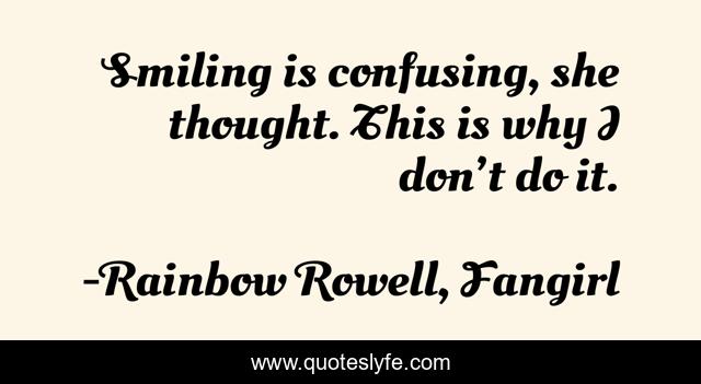 "Rainbow Rowell, Fangirl Quotes." Quoteslyfe.com, 2025. Fri. 05 Dec. 2025. <https://www.quoteslyfe.com/quote/Smiling-is-confusing-she-thought-This-is-194733>.