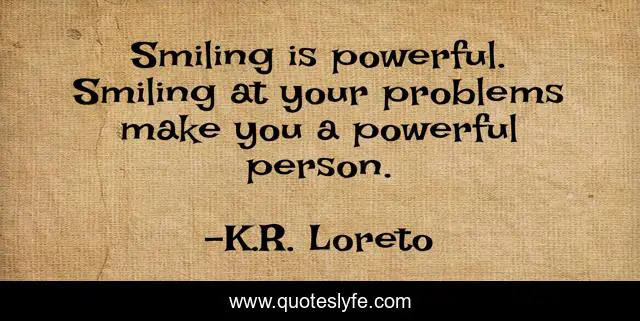 "K.R. Loreto Quotes." Quoteslyfe.com, 2025. Sat. 06 Dec. 2025. <https://www.quoteslyfe.com/quote/Smiling-is-powerful-Smiling-at-your-problems-116459>.