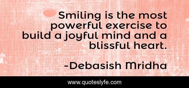 This page presents the quote "Smiling is the most powerful exercise to build a joyful mind and a blissful heart.". Author of this quote is Debasish Mridha. This quote is about miraboli, blissful-heart, inspirational, oscar-wilde, philosophy, debasish-mridha, tagore, quotes, buddha,.
