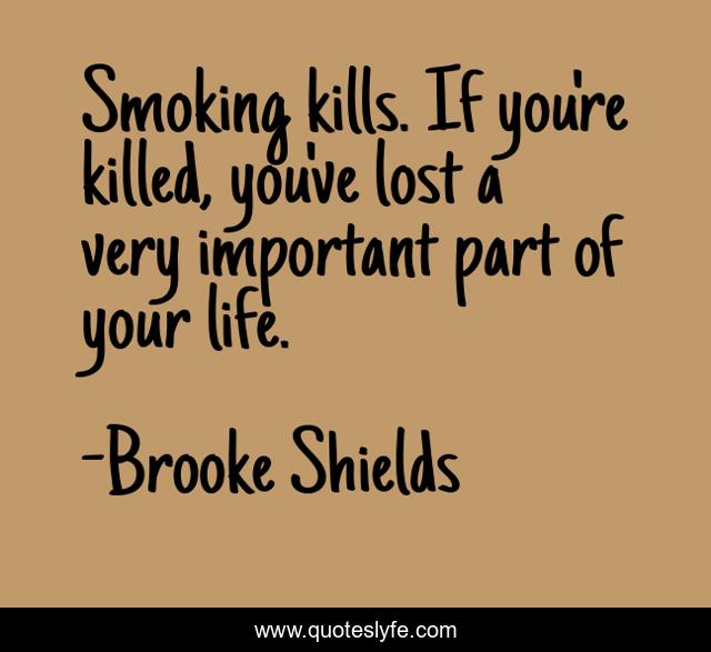 This page presents the quote "Smoking kills. If you're killed, you've lost a very important part of your life.". Author of this quote is Brooke Shields. This quote is about smoking, life, lost,.