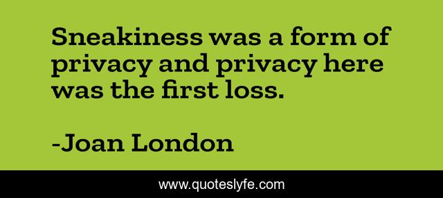 This page presents the quote "Sneakiness was a form of privacy and privacy here was the first loss.". Author of this quote is Joan London. .