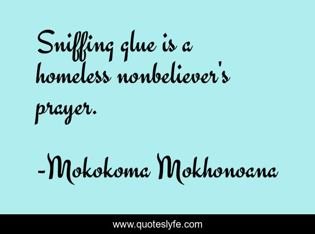 "Mokokoma Mokhonoana Quotes." Quoteslyfe.com, 2025. Sat. 06 Dec. 2025. <https://www.quoteslyfe.com/quote/Sniffing-glue-is-a-homeless-nonbeliever-s-115351>.