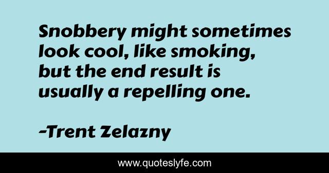 This page presents the quote "Snobbery might sometimes look cool, like smoking, but the end result is usually a repelling one.". Author of this quote is Trent Zelazny. This quote is about wit, wisdom,.