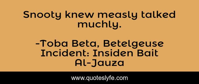 "Toba Beta, Betelgeuse Incident: Insiden Bait Al-Jauza Quotes." Quoteslyfe.com, 2025. Mon. 08 Dec. 2025. <https://www.quoteslyfe.com/quote/Snooty-knew-measly-talked-muchly-246340>.