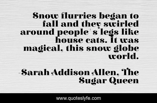 "Sarah Addison Allen, The Sugar Queen Quotes." Quoteslyfe.com, 2025. Sat. 06 Dec. 2025. <https://www.quoteslyfe.com/quote/Snow-flurries-began-to-fall-and-they-133424>.
