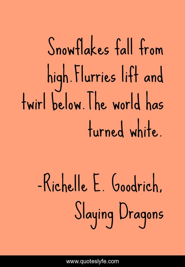"Richelle E. Goodrich, Slaying Dragons Quotes." Quoteslyfe.com, 2025. Mon. 08 Dec. 2025. <https://www.quoteslyfe.com/quote/Snowflakes-fall-from-high-Flurries-lift-and-189373>.