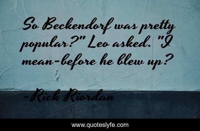 This page presents the quote "So Beckendorf was pretty popular?" Leo asked. "I mean-before he blew up?". Author of this quote is Rick Riordan. This quote is about mythology, percy-jackson, humour,.