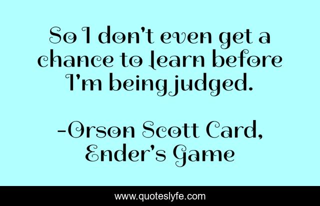 This page presents the quote "So I don't even get a chance to learn before I'm being judged.". Author of this quote is Orson Scott Card, Ender's Game. This quote is about truth-of-life, truth,.