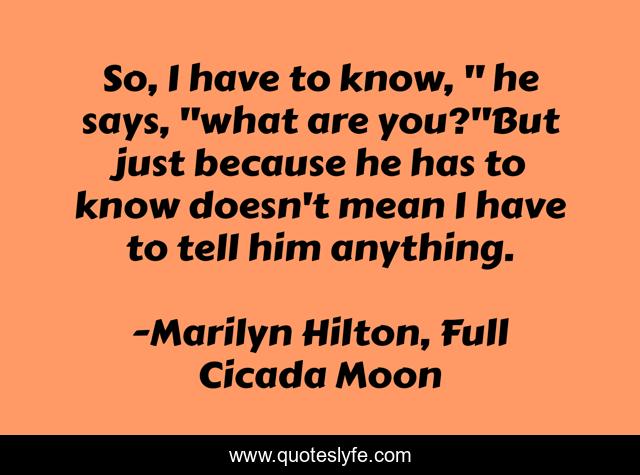 "Marilyn Hilton, Full Cicada Moon Quotes." Quoteslyfe.com, 2025. Fri. 05 Dec. 2025. <https://www.quoteslyfe.com/quote/So-I-have-to-know-he-says-200310>.
