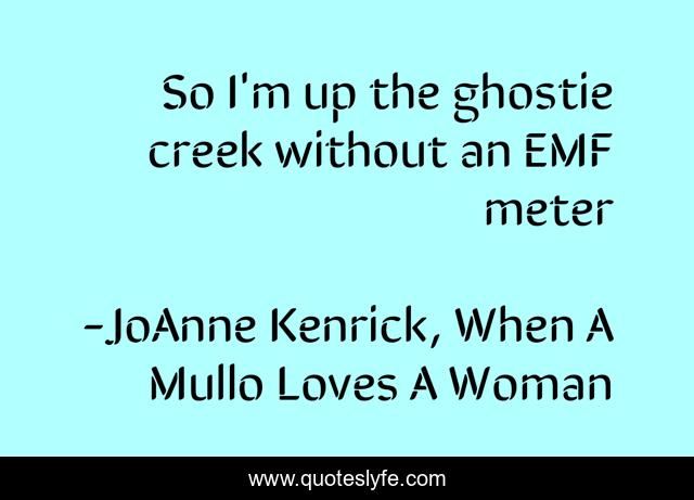 This page presents the quote "So I'm up the ghostie creek without an EMF meter". Author of this quote is JoAnne Kenrick, When A Mullo Loves A Woman. This quote is about mystery, mulo, past-lives, mullo, vampire, paranormal-romance, haunted, when-a-mullo-loves-a-woman,.