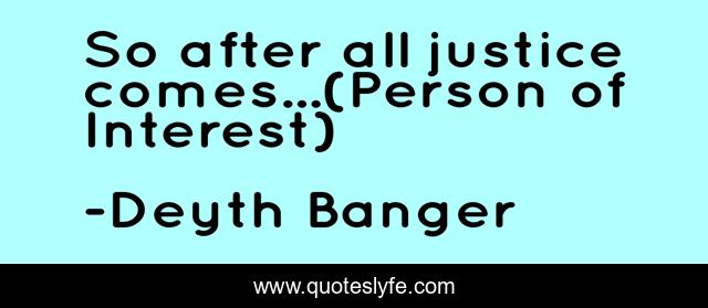 This page presents the quote "So after all justice comes...(Person of Interest)". Author of this quote is Deyth Banger. This quote is about justice, after, comes,.